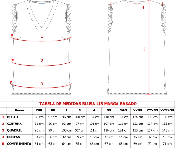 Tamanhos   PP, P, M, G, GG, XGG, XXGG,