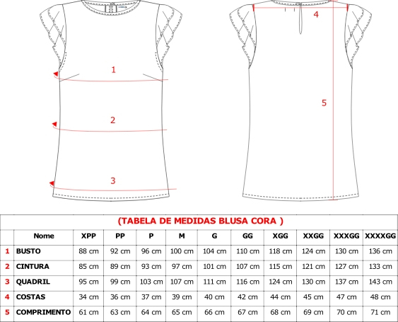 Tamanhos   PP, P, M, G, GG, XGG, XXGG,