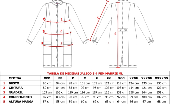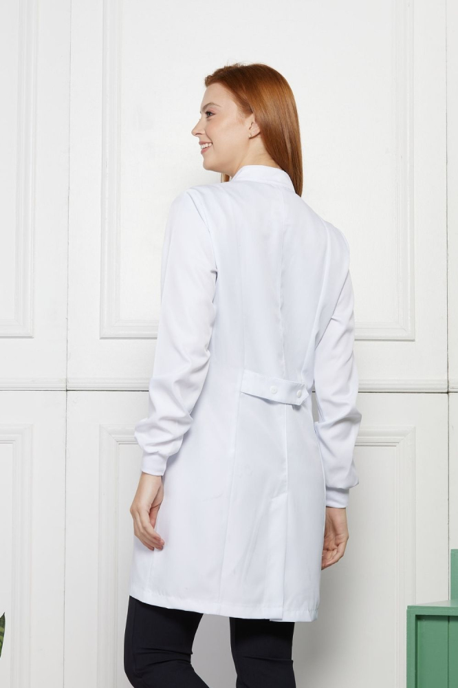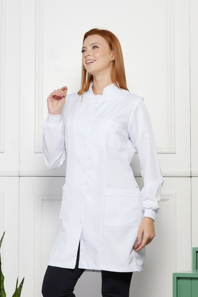 Jaleco 3/4 Marrie microfibra grossa branco manga longa com punho de ribana